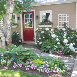 Because so many of those who attended asked about Sherwood Peace, Pat and Robert have agreed to prepare a description and photos that we will post in this space within the next week. We will also post a list of the names of all the perennials from Elite Growers, in hopes that this will help you with identification.