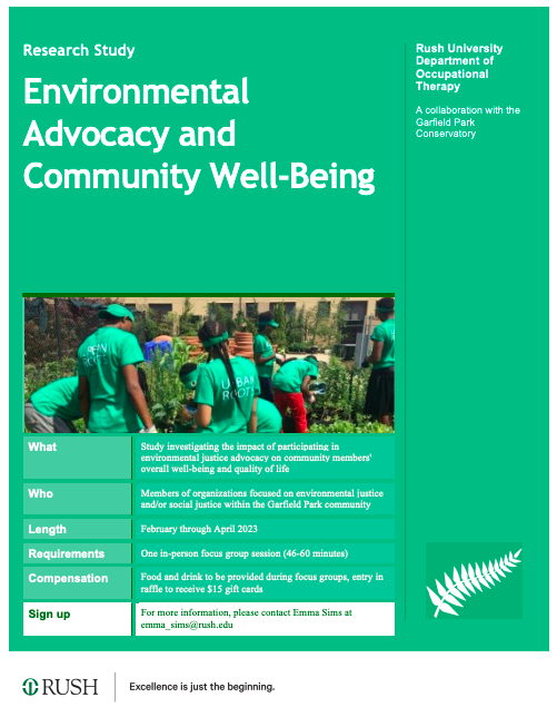 [Advocacy-outreach] Fwd: [Communications] FYI Rush University Research Opportunity at Garfield Park Conservatory