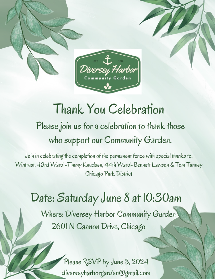 [Communications] Last Day to RSVP - Diversey Harbor Community Garden - Celebration Event June 8, 2024