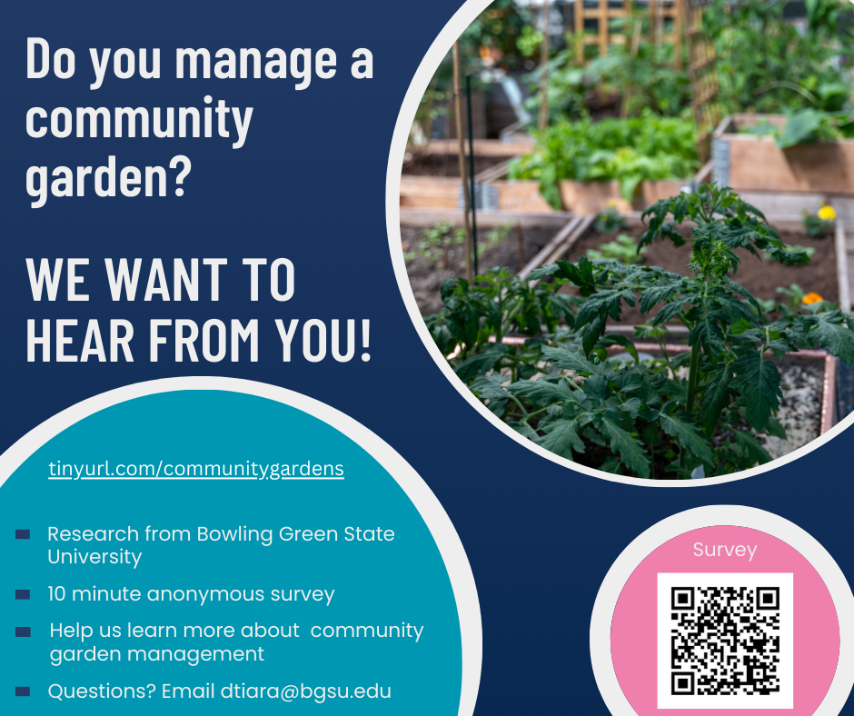 My name is Averi Glick and I am a Master of Public Administration student at Bowling Green State University in Bowling Green, Ohio. I am reaching out because some classmates and I are running a national survey designed to identify best practices for community garden managers. As the Chicago Community Gardens Association, we were wondering if you would be willing to forward our survey to your members.