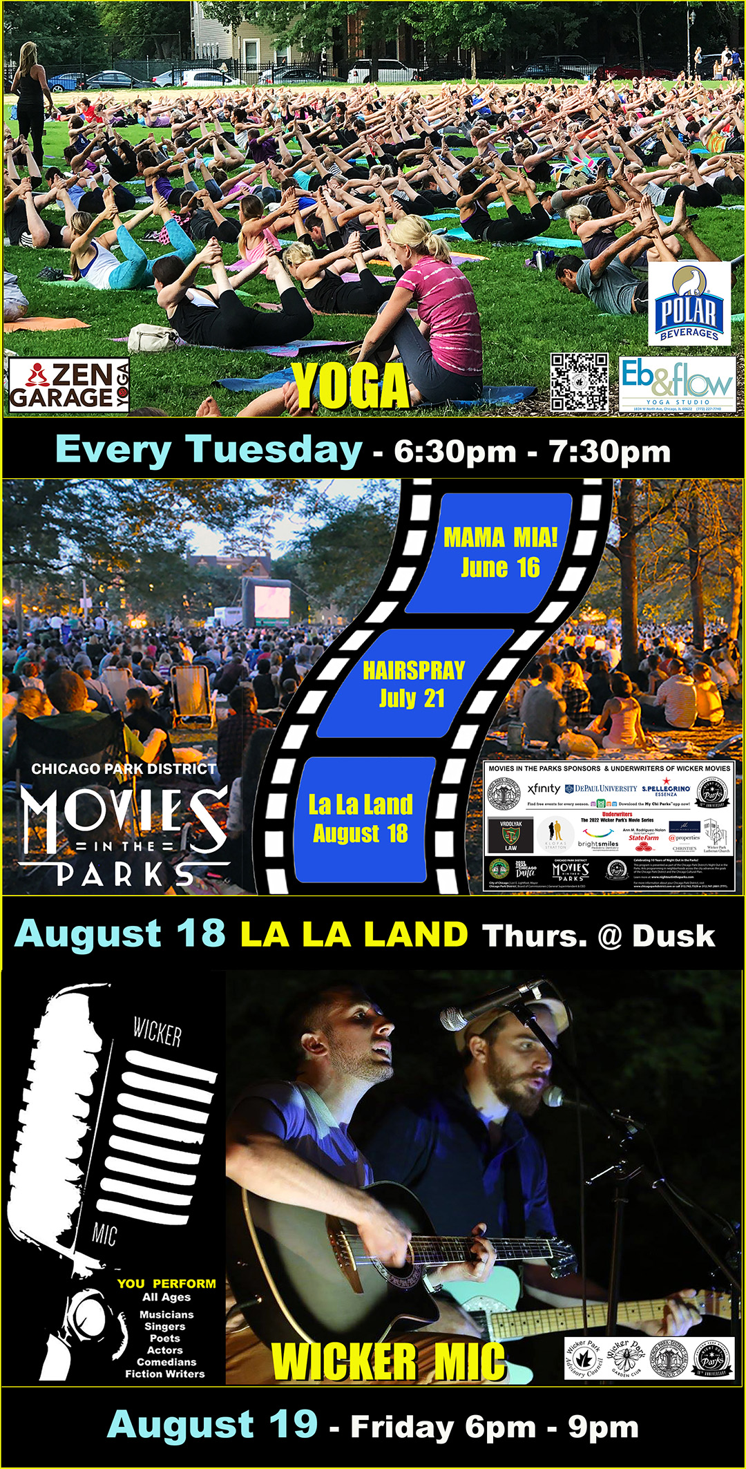 All Three Events will be in the Wicker Park Field at 1425 N. Damen Avenue