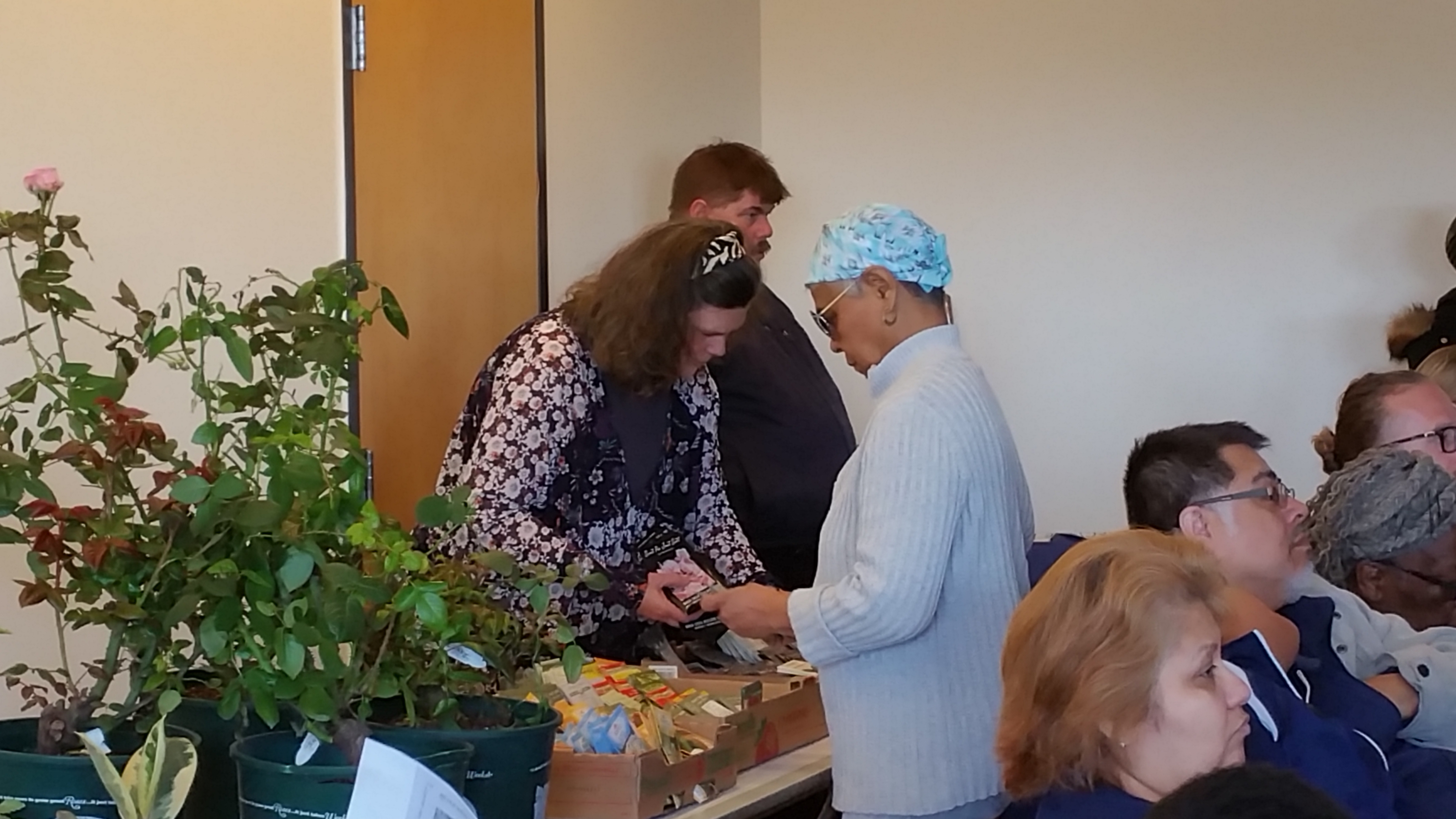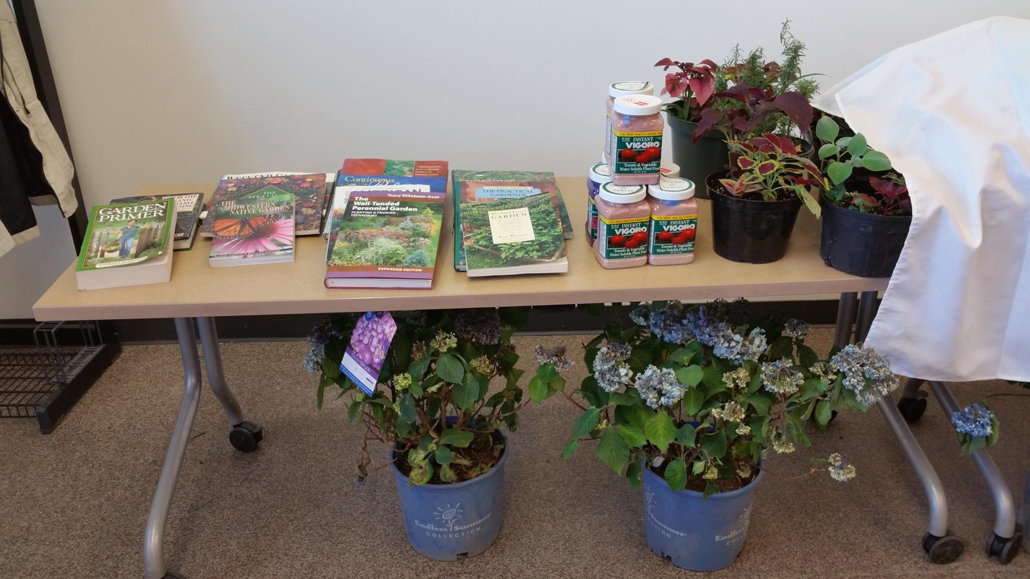 The distribution that followed served up 2500 bedding plants that went home with 88 registered participants! Resources Committee grew 1500 plants throughout months before the distribution and obtained 1000 from the Chicago Flower and Garden Show. Tables in the room were arrayed with door prizes–an assortment of potted coleus, more plants and shrubs, and gardening books. A table of free seed packets completed the attractive display that is always guaranteed by CCGA Resources and brings many gardeners to their events.